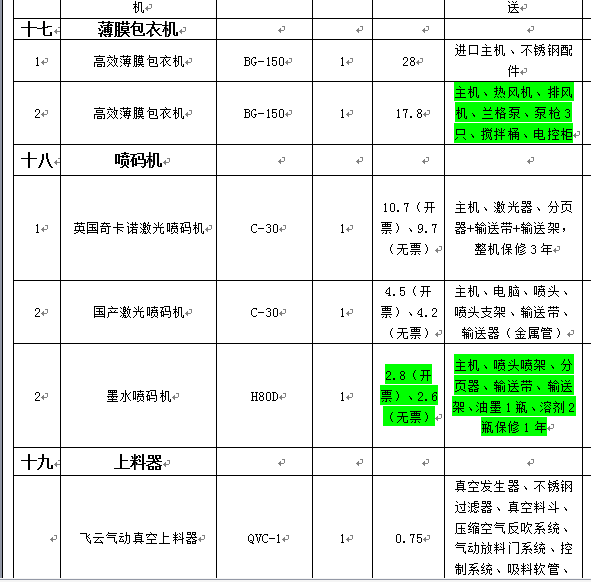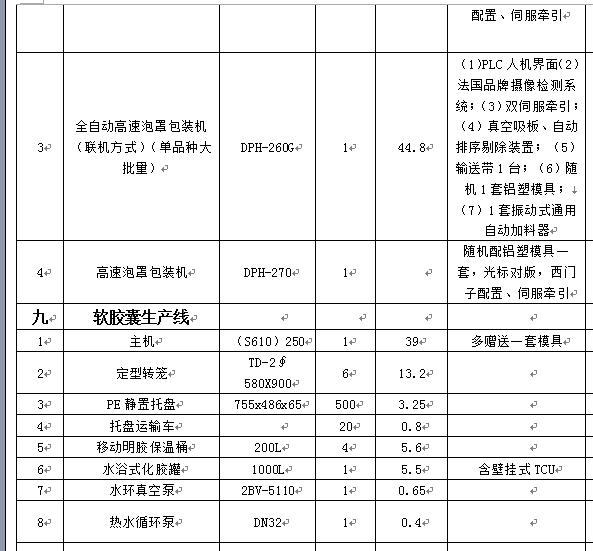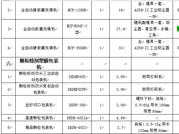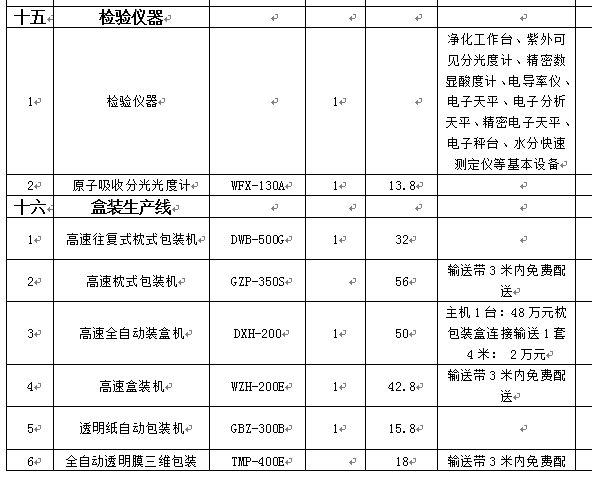 企业占地三亩,年厂房土地租金23万,厂房上下两层共1500平,办公上下两层450平,拥有胶囊.片,颗粒,茶生产线,包装车间等全部新设备,因为股东原因现在转450万,此项目光有发票的投资都到670多万,无批文,原来过了GMP加工过样品,现在要过新版大约需10万左右,以下是部分设备: